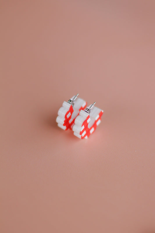 effie - gingham frilly heart studs