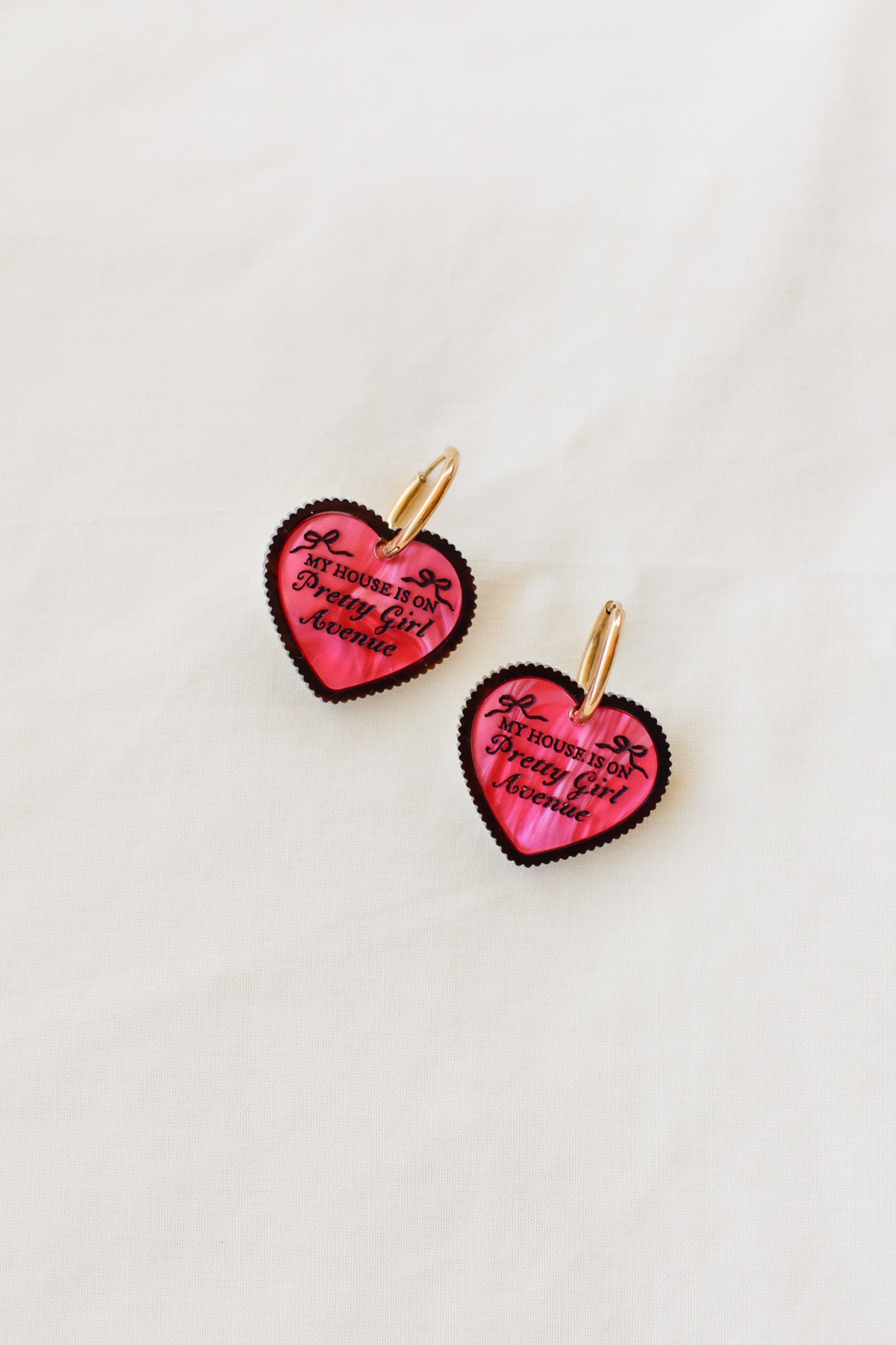🌈 brown & pink marble acrylic with brown text that reads 'my house is on pretty girl avenue'